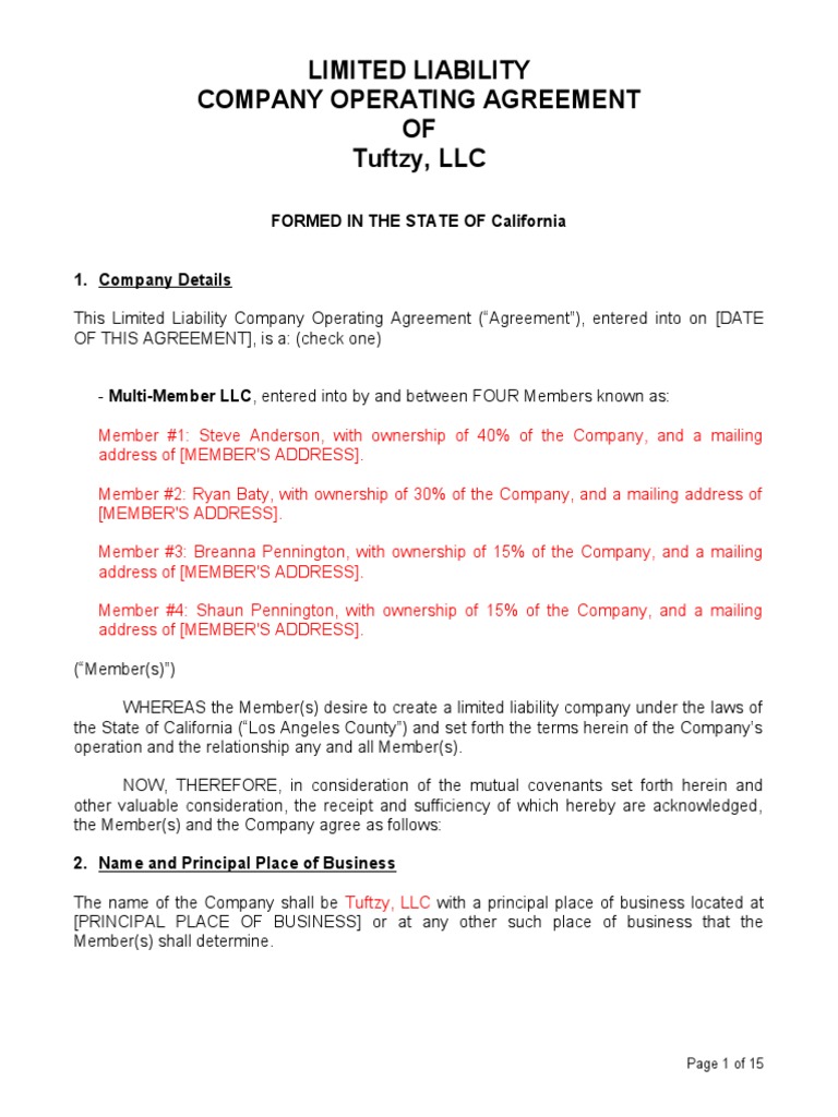 Llc Operating Agreement Template California