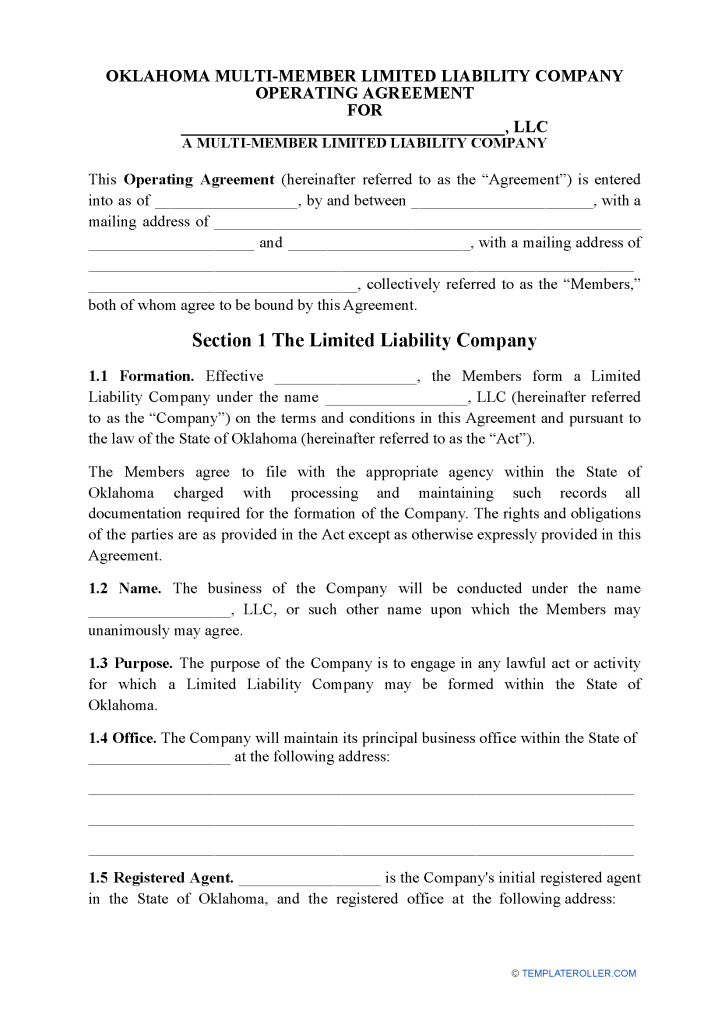 LLC operating agreement template (Oklahoma) in Word and Pdf formats