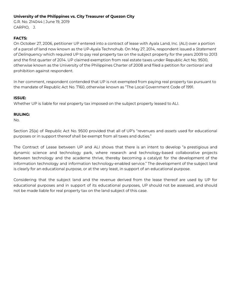 University of The Philippines vs City Treasurer of Quezon City PDF