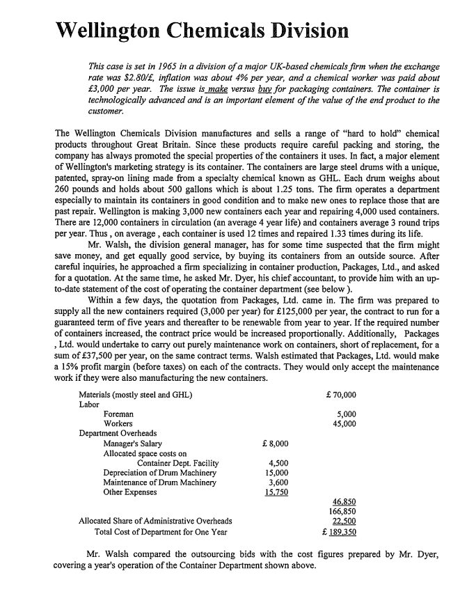 Solved Wellington Chemicals Division This case is set in Chegg com