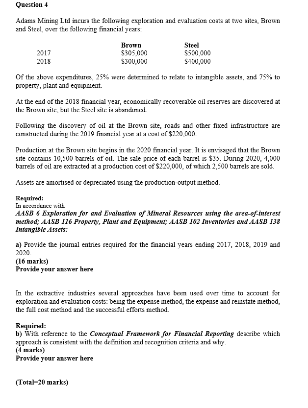 Question 4 Adams Mining Ltd incurs the following Chegg com