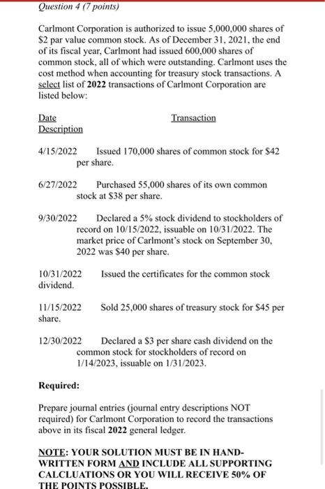 Solved Question 4 (7 points) Carlmont Corporation is Chegg com