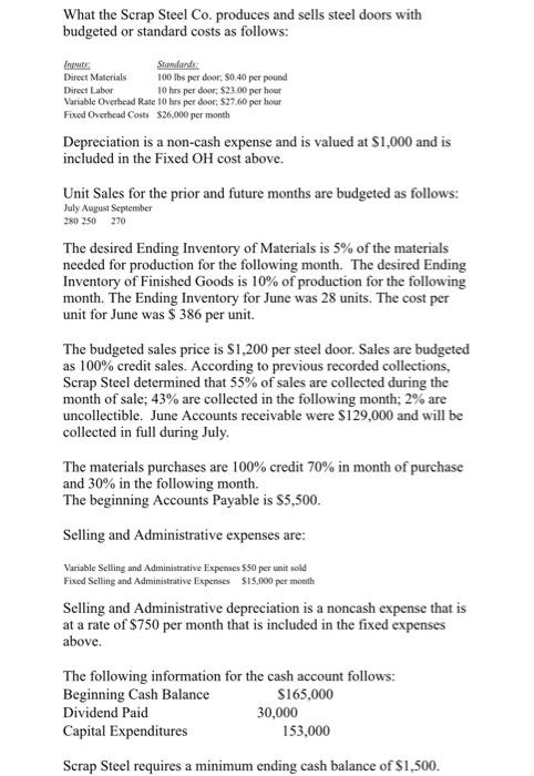 Solved 1 Perform a Budgeted Income Statement2 Prepare a Chegg com