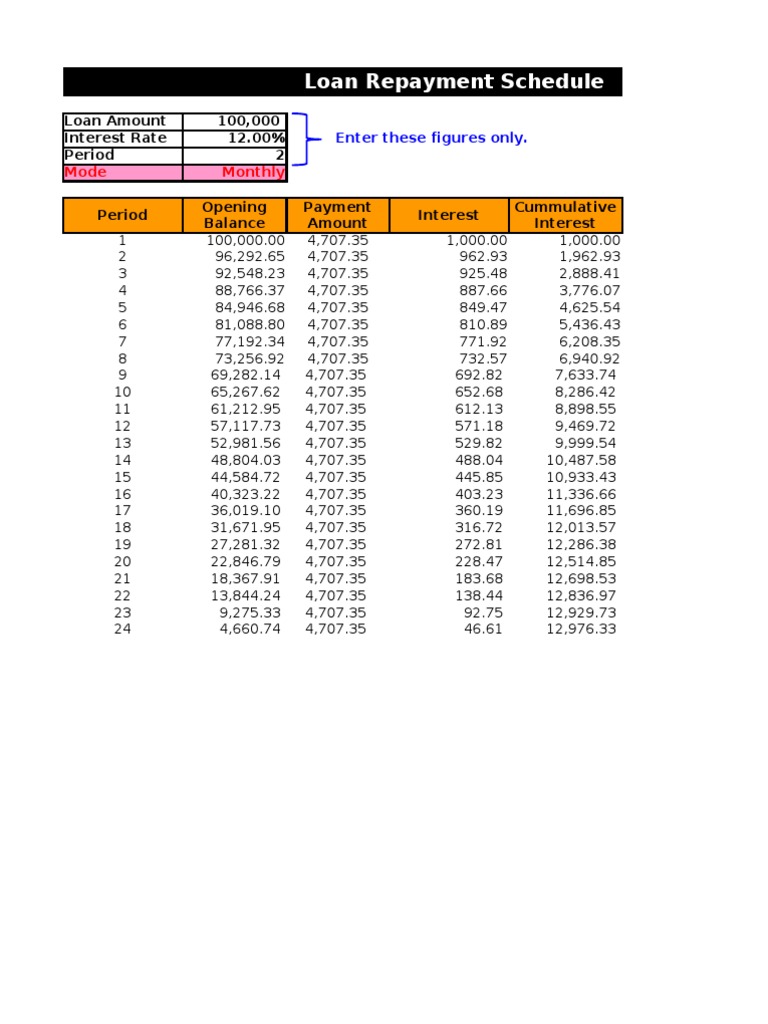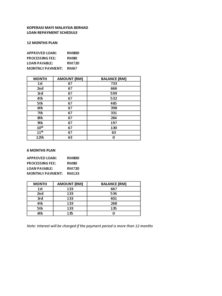 Repayment Schedule PDF Loans Interest