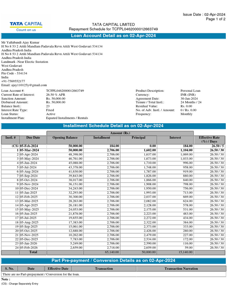 Repayment Schedule PDF