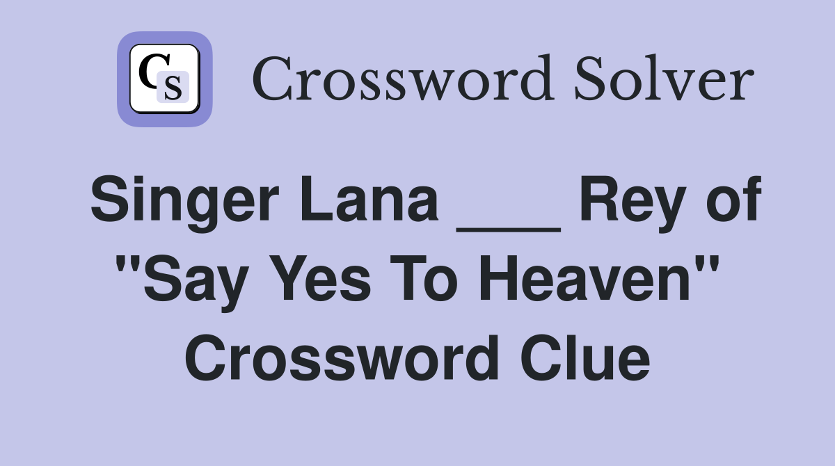 Singer Lana Rey of quot Say Yes To Heaven quot Crossword Clue Answers