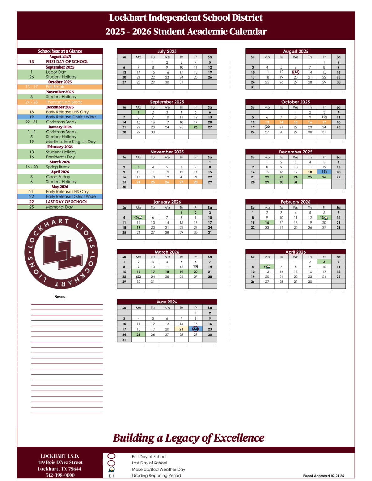 LockHart ISD School Calendar 25 26 PDF EduCounty