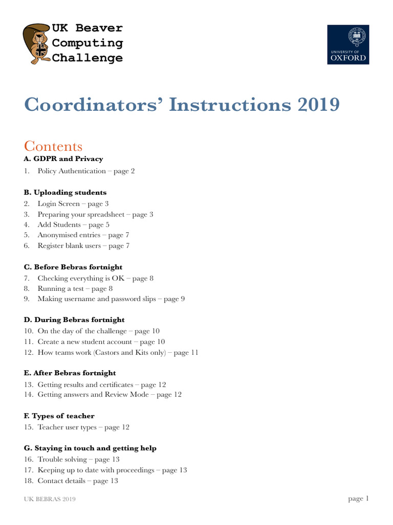 UKBebras Cooord Instructions 2019 Download Free PDF Login Spreadsheet