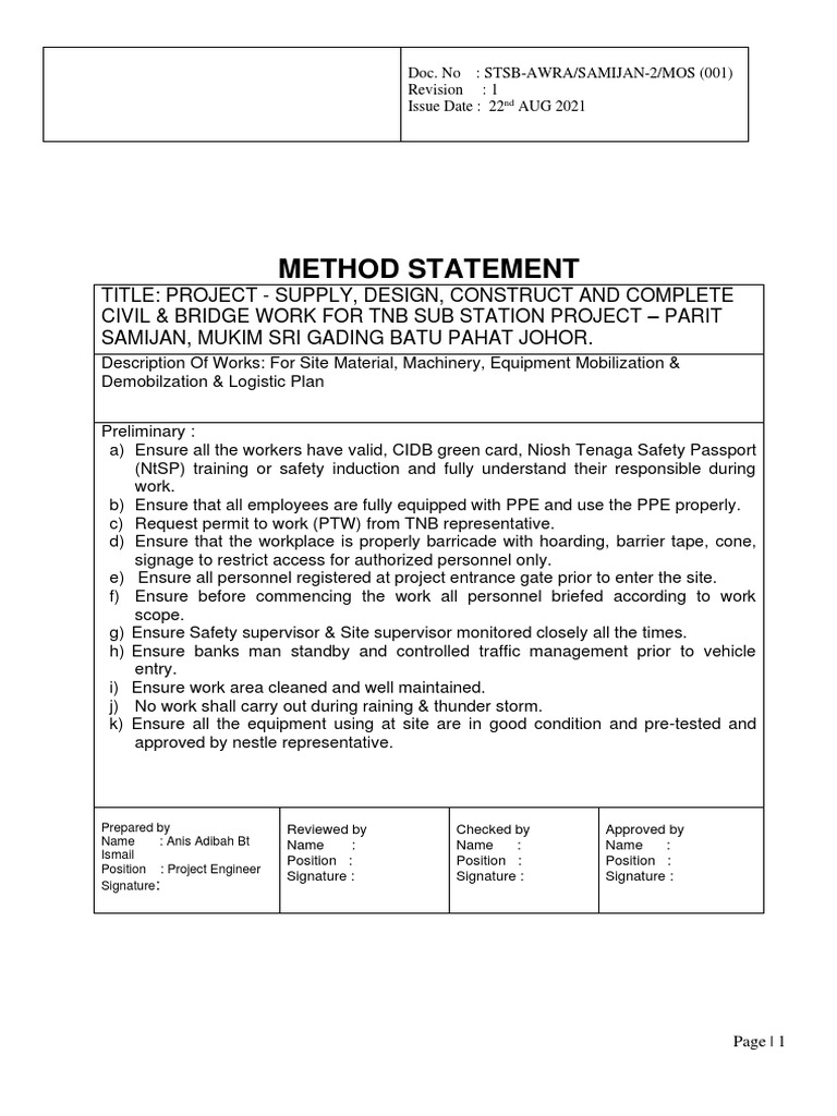 MOS 001 Rev 1 Site Material Machinery Equipment Mobilization