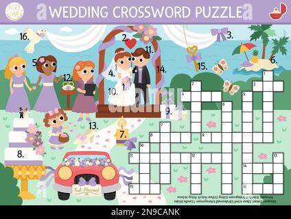 Vector wedding crossword puzzle for kids Simple marriage ceremony quiz