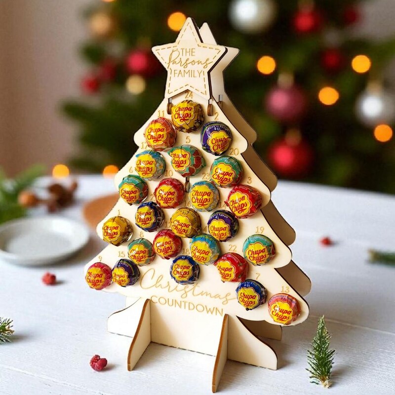 Personalised lolly christmas wooden reusable advent calendar tree xmas
