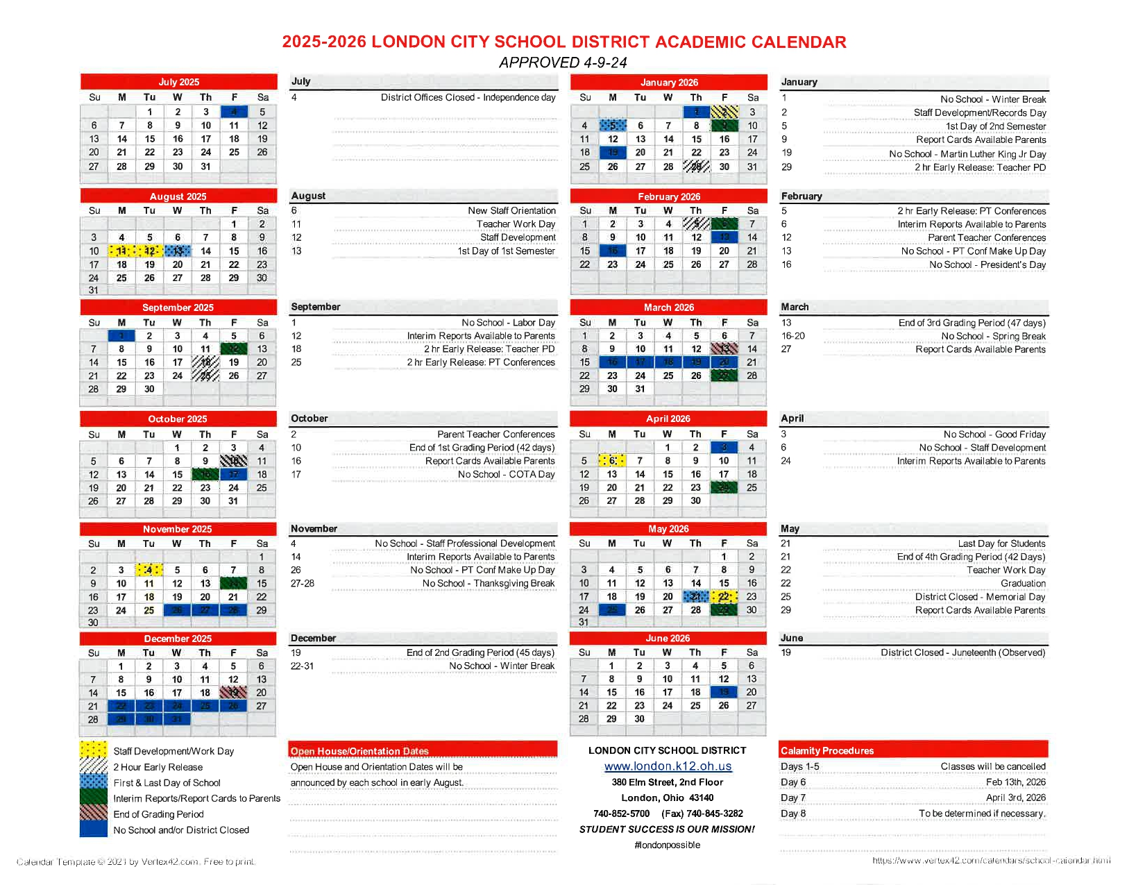 LONDON CITY SCHOOL DISTRICT Calendar 25 26 Revised PDF EduCounty