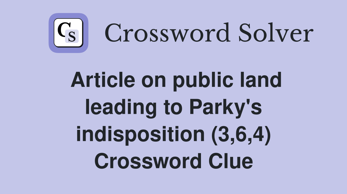 Article on public land leading to Parky #39 s indisposition (3 6 4