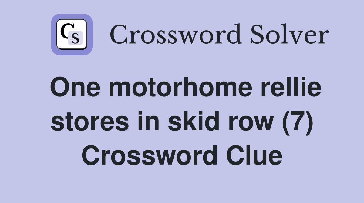 One motorhome rellie stores in skid row (7) Crossword Clue Answers
