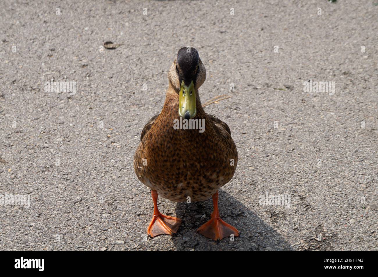 Lone duck walking on the pathway in a park Stock Photo Alamy