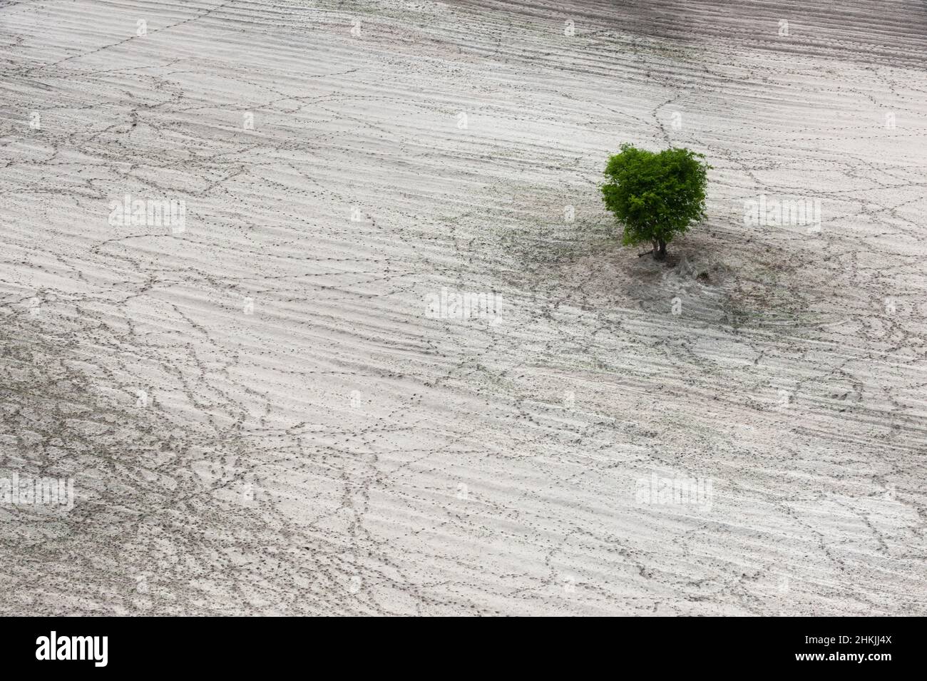 Lone tree in a sandy area aerial photograph Stock Photo Alamy