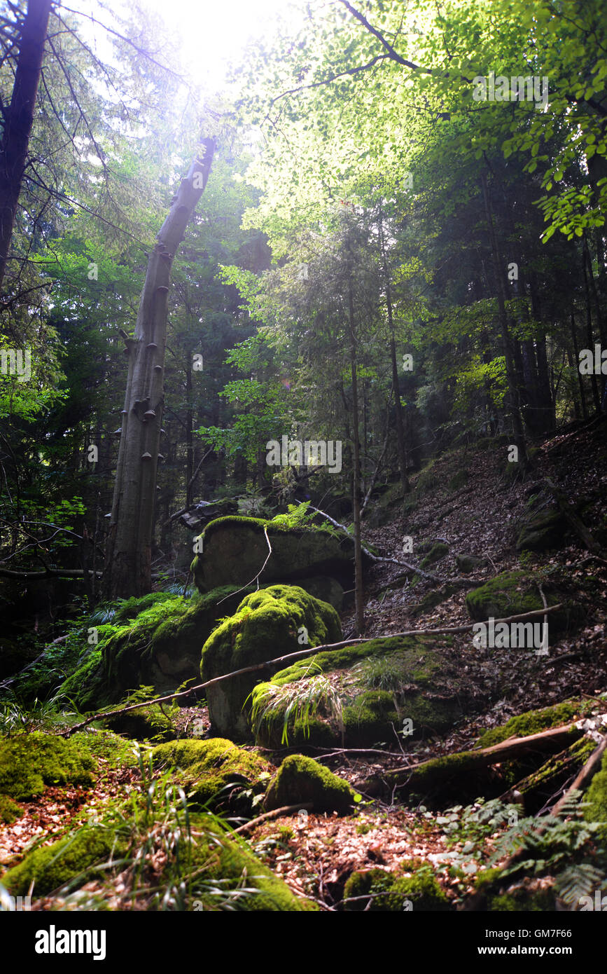 Lone Wolf on Wondrous Double Exposure Natural Background of Autumnal