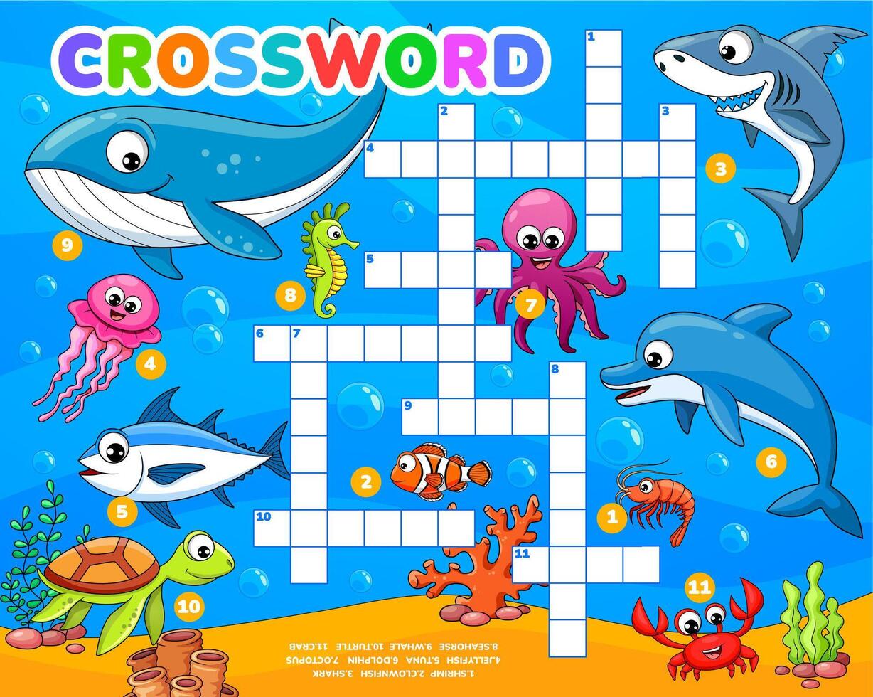 Cartoon underwater animals and fish crossword grid 46602489 Vector Art