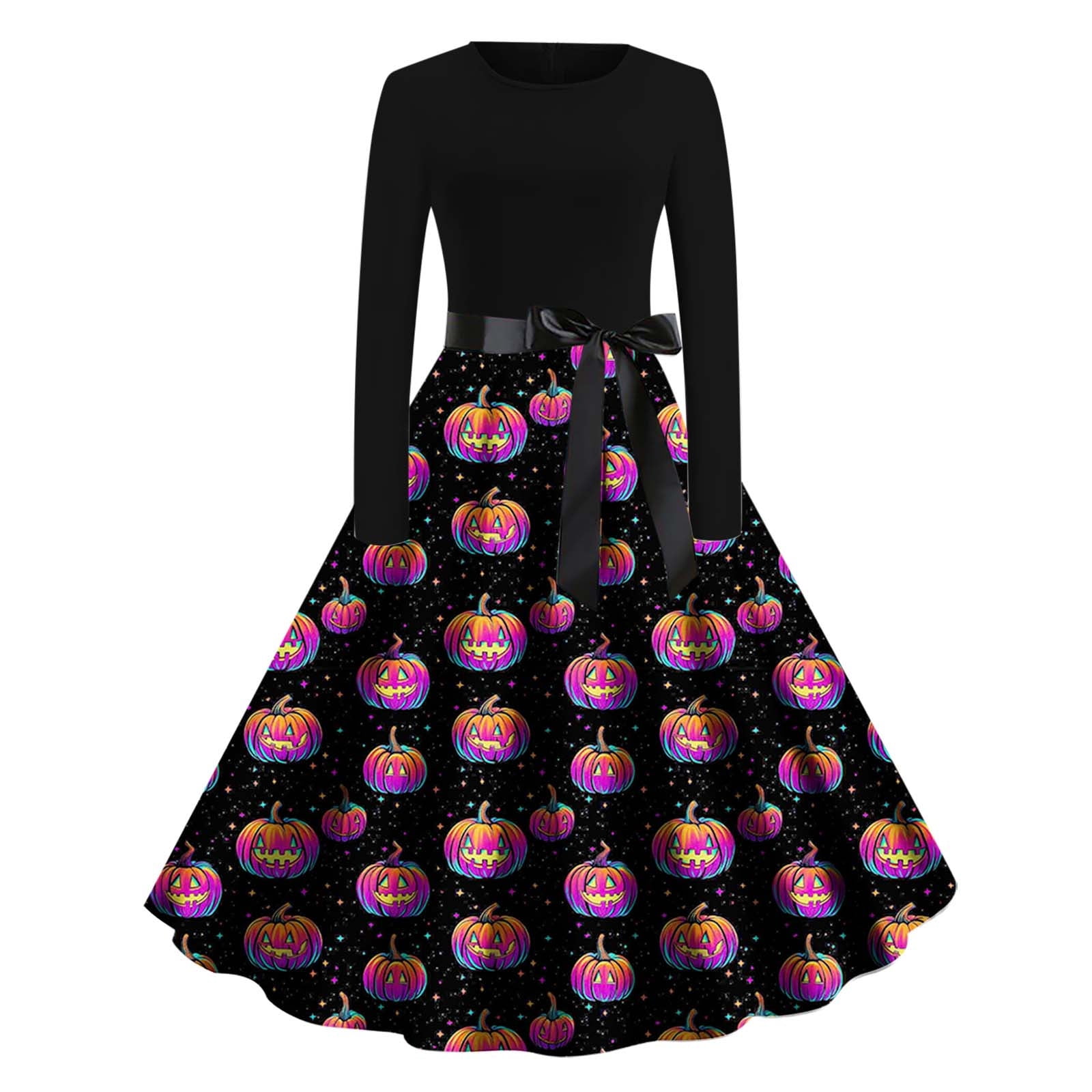 Enjoytime Womens Long Sleeve Party Dress Printed A Line Crew Neck