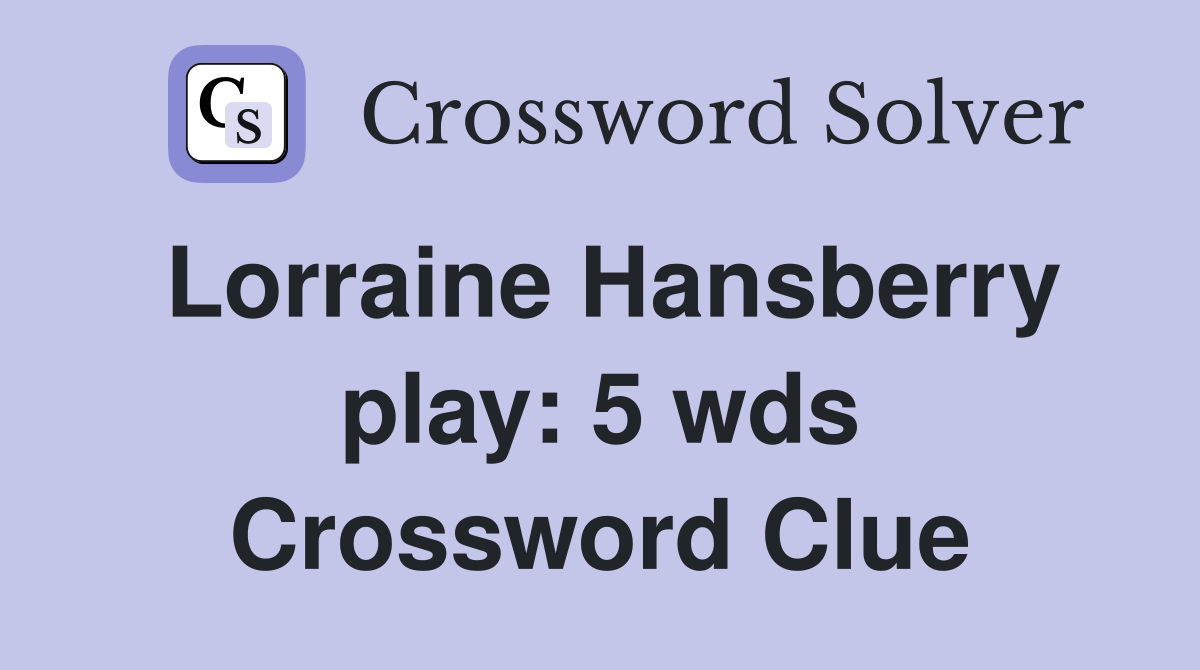 Lorraine Hansberry play: 5 wds Crossword Clue Answers Crossword Solver