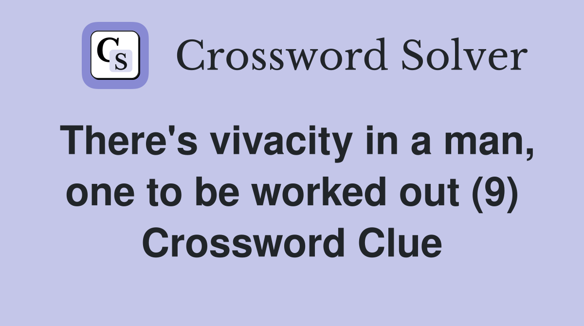 There #39 s vivacity in a man one to be worked out (9) Crossword Clue