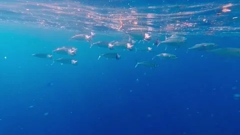School of long jawed mackerel fish swimm Stock Video Pond5