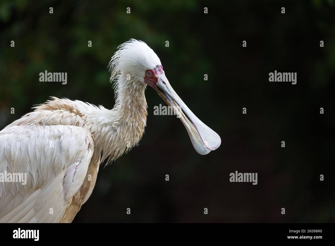 bright eyed African spoonbill (Platalea alba) white long legged wading