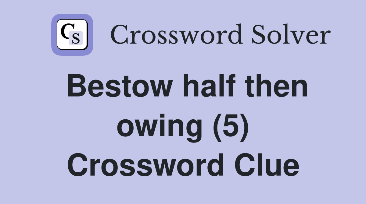 Bestow half then owing (5) Crossword Clue Answers Crossword Solver