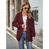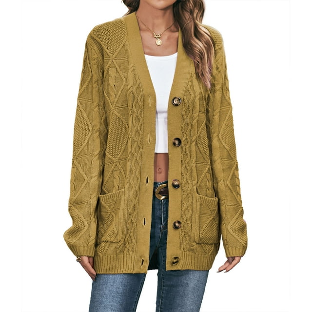 Womens Long Sleeve Cable Knit Sweater Open Front Cardigan Button Loose