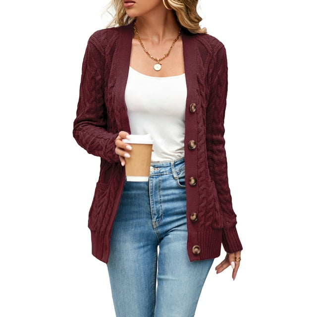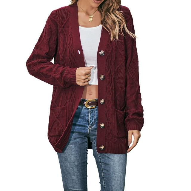 Women #39 s Cable Knit Cardigan Long Sleeve Open Front Buttoned Loose