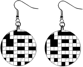 Amazon com: Crossword Puzzle Dangle Earrings Jewelry 1 inch Buttons