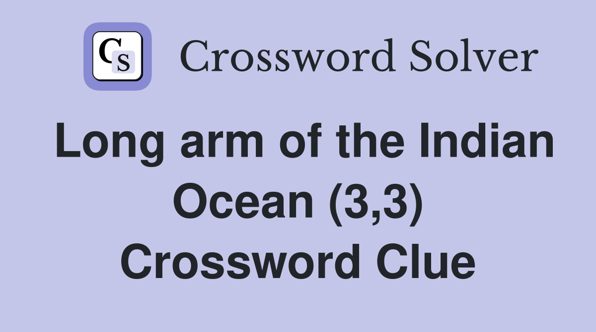 Long arm of the Indian Ocean (3 3) Crossword Clue Answers Crossword