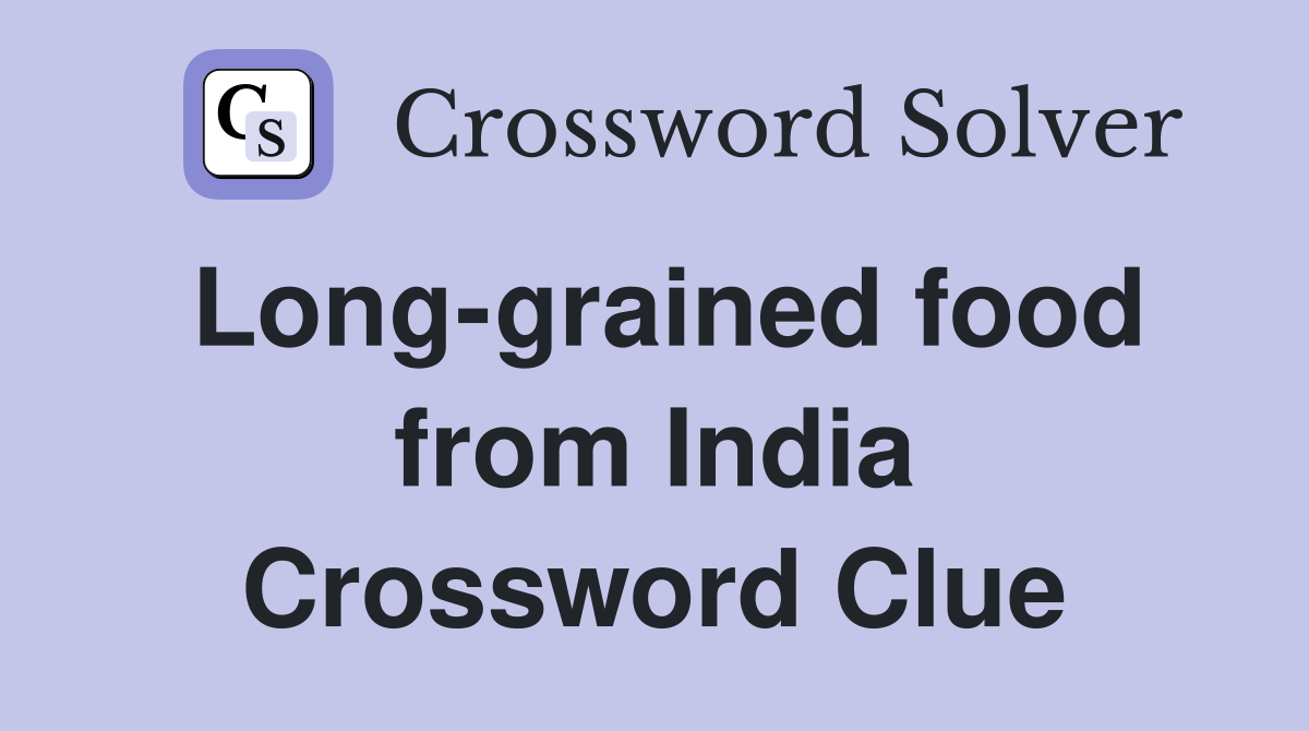 Long grained food from India Crossword Clue Answers Crossword Solver
