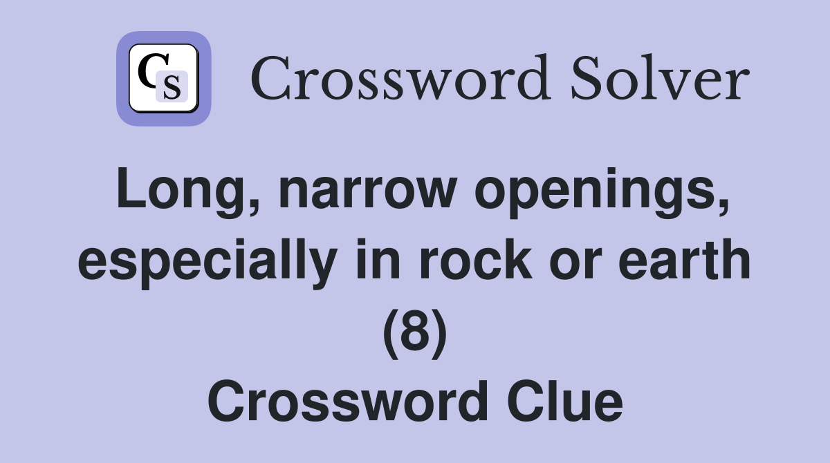 Long narrow openings especially in rock or earth (8) Crossword Clue
