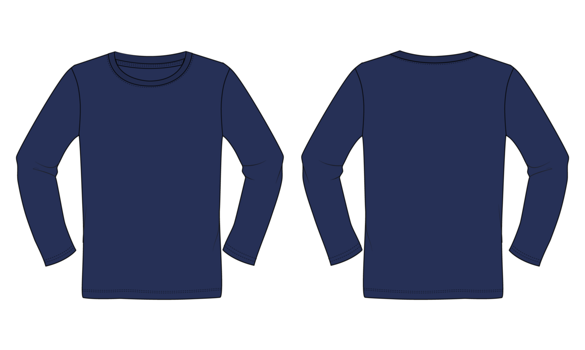 Long sleeve navy blue T shirt mockup with front and back view 26650123
