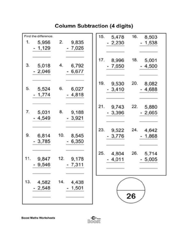 Subtraction 4 Digit Numbers
