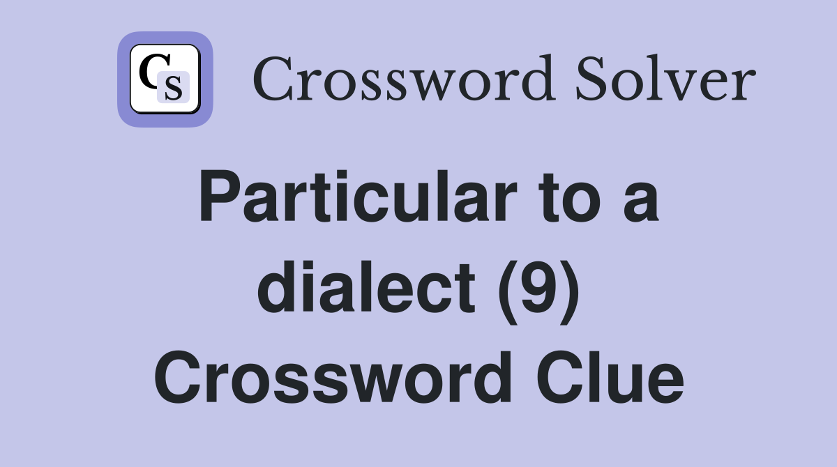 Particular to a dialect (9) Crossword Clue Answers Crossword Solver