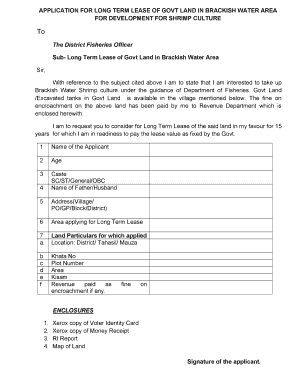 Fillable Online APPLICATION FOR LONG TERM LEASE OF GOVT LAND IN