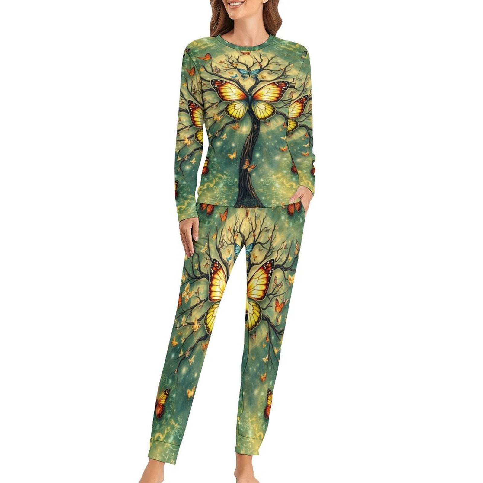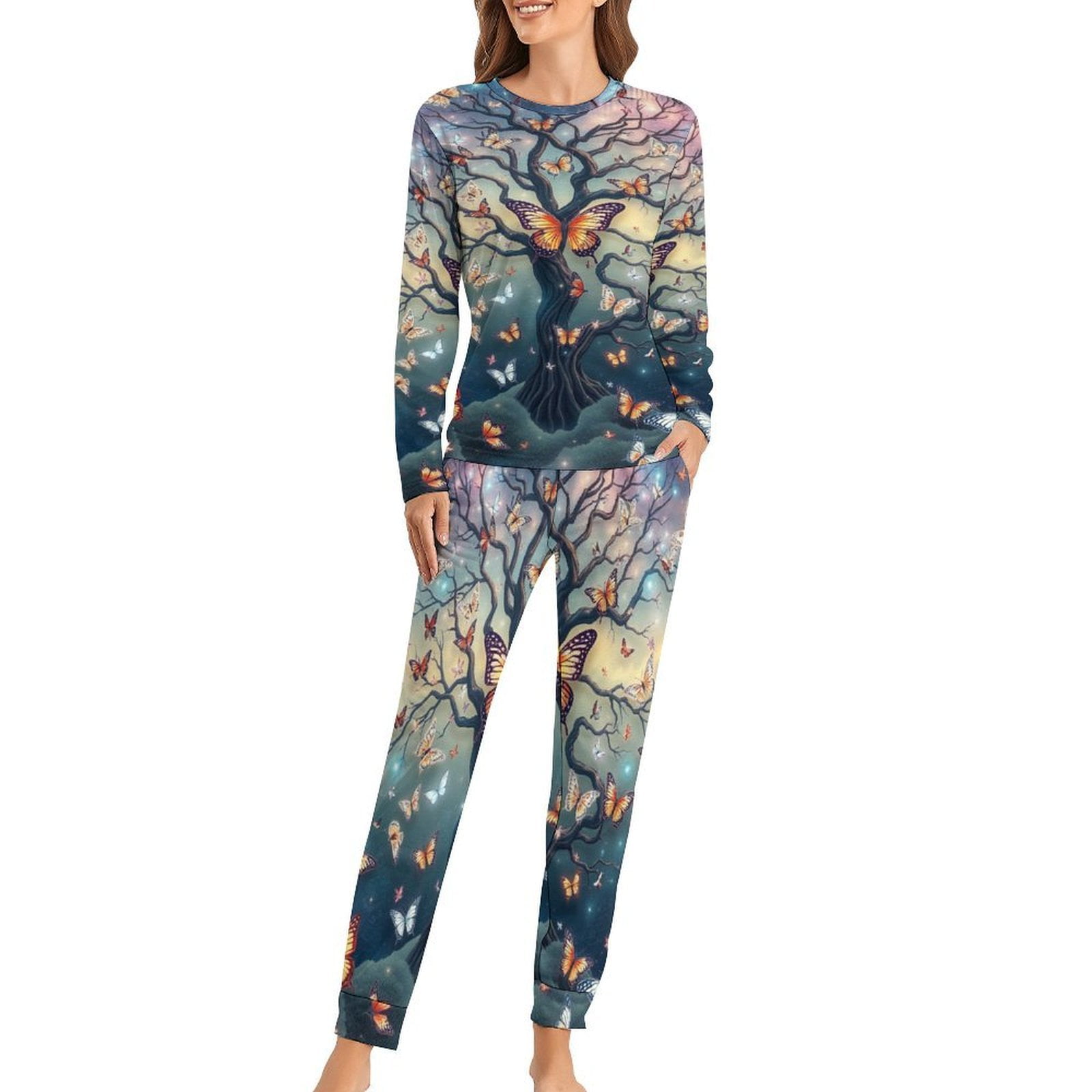 Butterfly Tree Magic Pajamas Woman Two Piece Design Long Sleeves