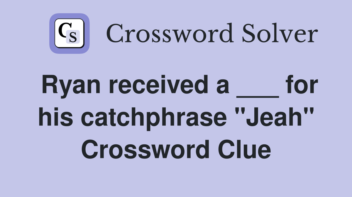 Ryan received a for his catchphrase quot Jeah quot Crossword Clue Answers