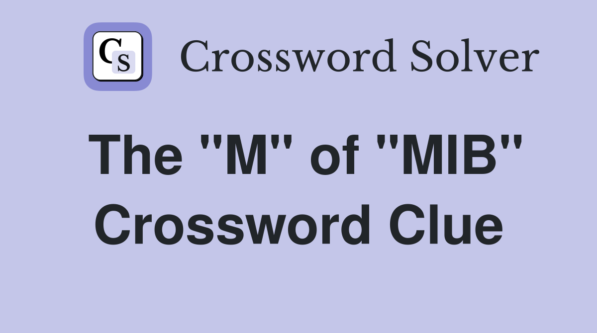 The quot M quot of quot MIB quot Crossword Clue Answers Crossword Solver
