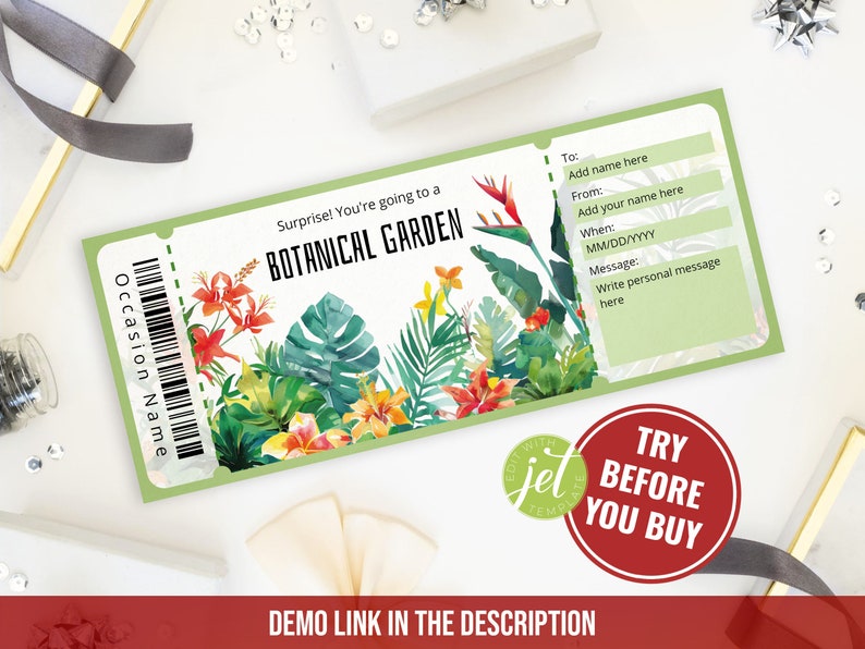 Editable Botanical Garden Ticket Gift Certificate Template Surprise