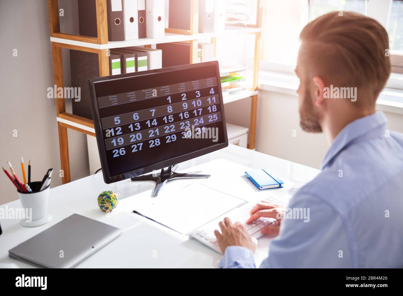 Employee Looking Calendar Schedule On Computer Screen Stock Photo Alamy
