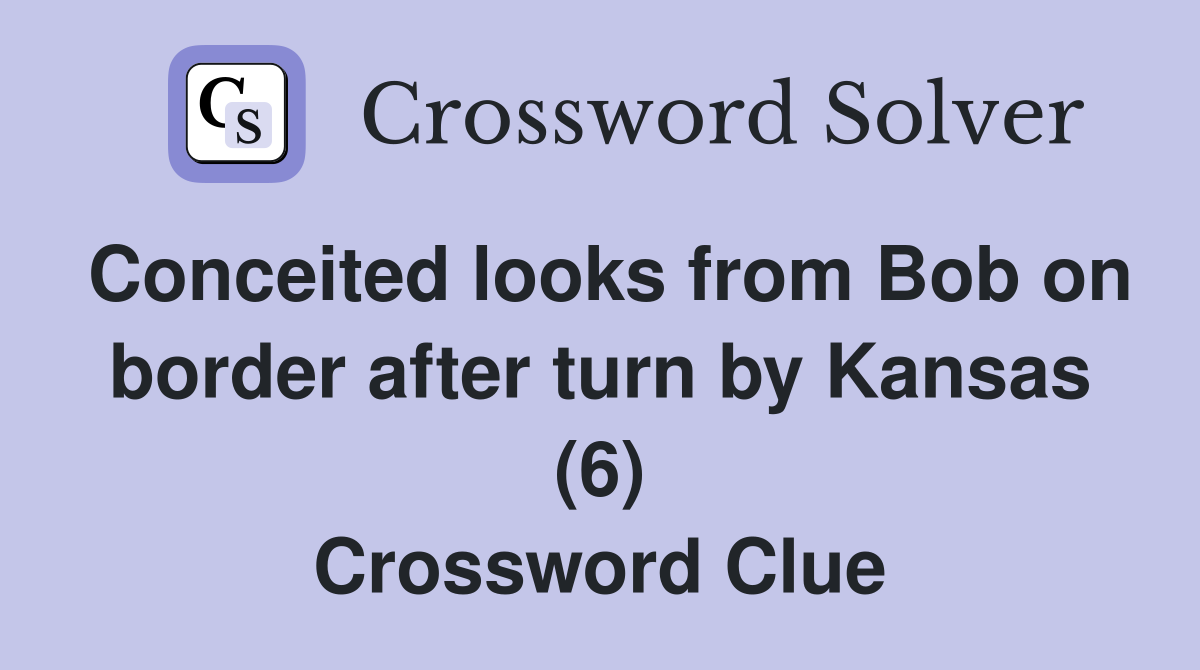 Conceited looks from Bob on border after turn by Kansas (6) Crossword