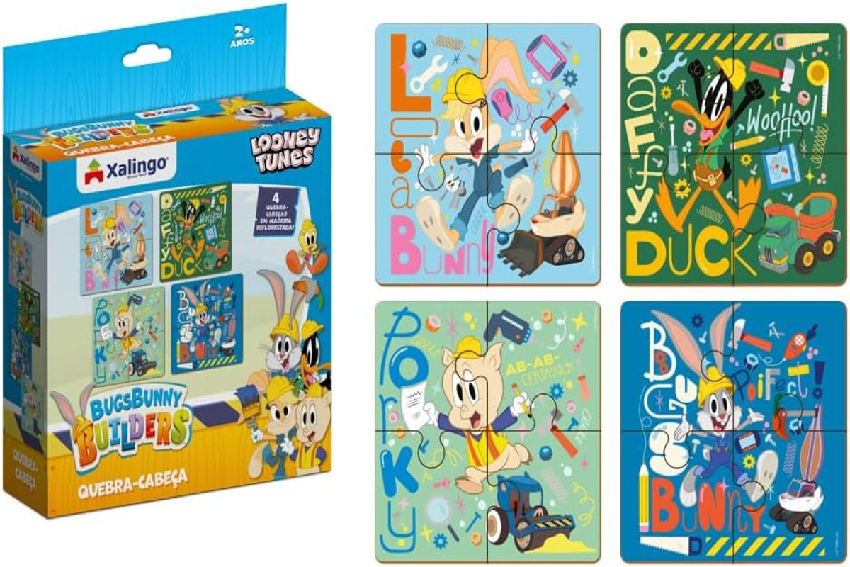 Quebra Cabeça com 4 cenas Bugs Bunny Looney Tunes 16 peças Xalingo