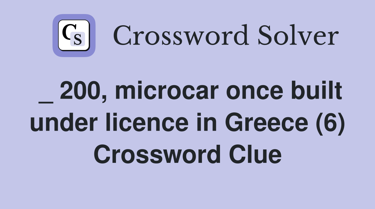 200 microcar once built under licence in Greece (6) Crossword Clue