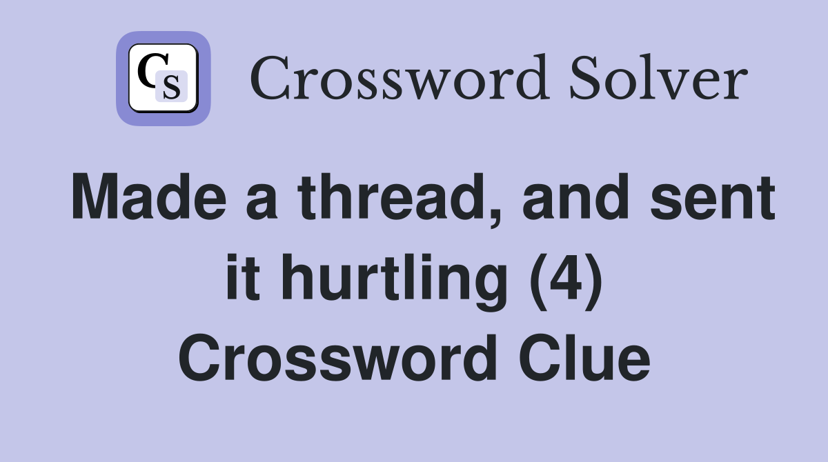 Made a thread and sent it hurtling (4) Crossword Clue Answers