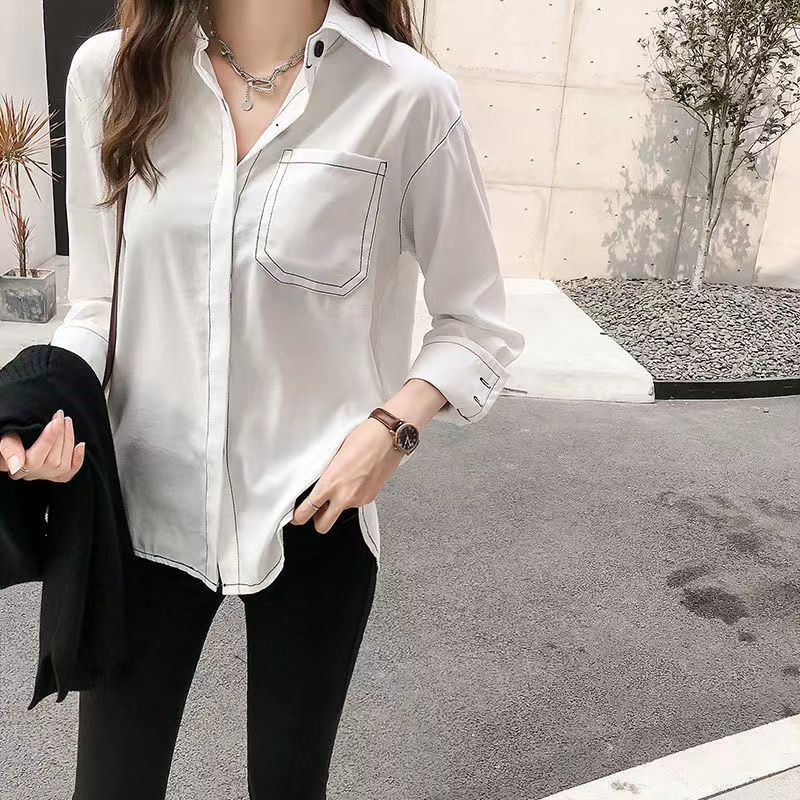 stock Korean Loose Women Long Shirt Female Korean Style Loose Thin Top