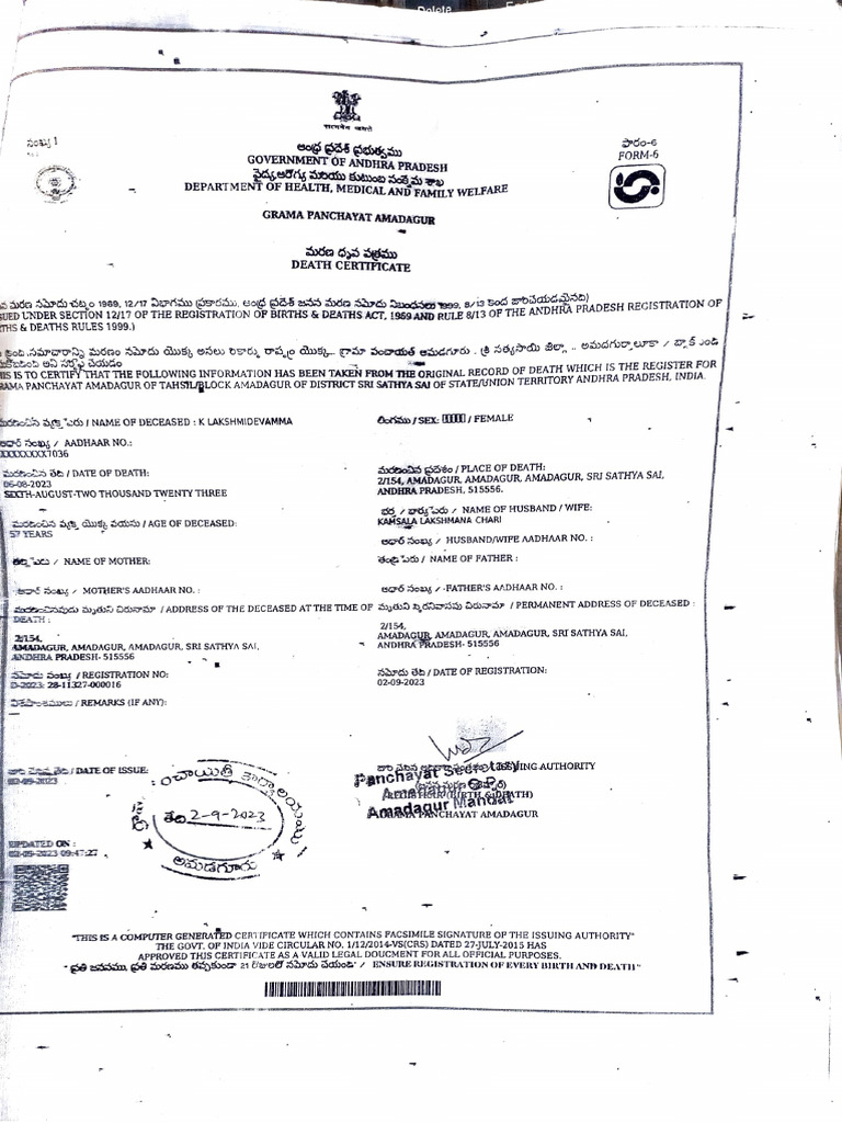 Sarojamma Death Certificate PDF Government And Personhood Government