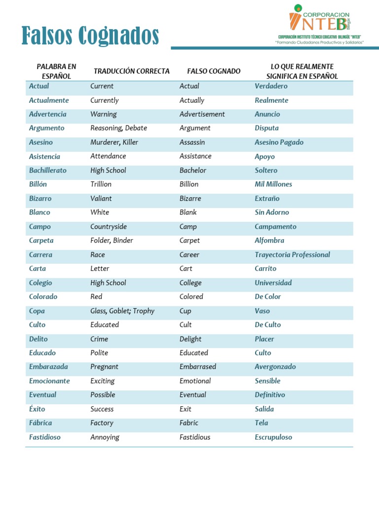 844912 Los cognados falsos False Cognates